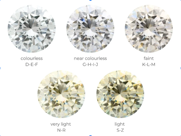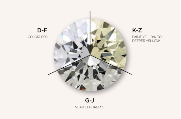 Những viên kim cương thuộc loại gần như không màu bao gồm nước G - H - I - J. Bạn có thể quan sát thấy những vệt màu bên trong khi nhìn từ trên xuống.