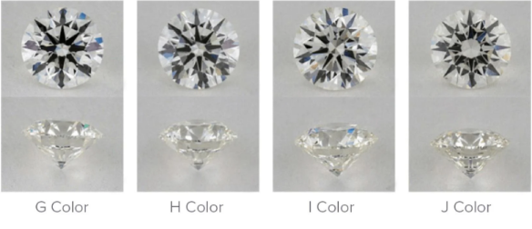 Thông thường, một viên kim cương nước G sẽ có màu sắc khá tương đồng với nhóm không màu D - E - F. Còn các viên kim cương thuộc nhóm H, I và J sẽ có nhiều vệt màu hơn một chút. Nhóm gần như không màu thuộc bảng nước kim cương này cũng là lựa chọn phổ biến cho nhẫn đính hôn vì nó có mức giá tốt hơn.