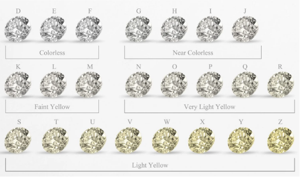 Theo tiêu chuẩn GIA thì các viên kim cương thuộc nhóm không màu (D, E, F) tạo ra ánh sáng bảy màu cầu vồng lung linh hơn khi phản chiếu và không pha lẫn tạp chất nên có màu trắng tinh khiết khi quan sát bằng mắt thường.